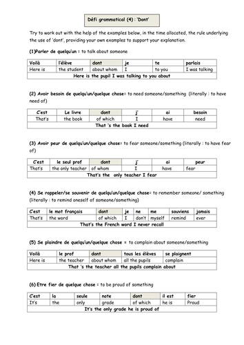 Exercise 1 Combine the two sentences using who whose which et where. B1 Relative Pronuns RC004 Complete the sentences with relative pronouns from the box. This packet is a great way to teach practice and review French relative pronouns qui que and dont.
